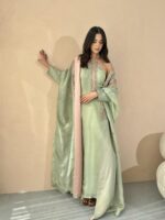 Shine with a charming look with this luxurious royal green abaya! Its elegant, flowing design offers comfort and luxury at the same time. Made from soft, lightweight fabric suitable for all seasons, it features sophisticated details that add a touch of distinction to your look.