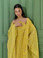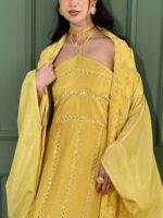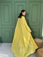 Highlight your beauty with a radiant look with this luxurious golden yellow abaya! Its elegant and sophisticated design gives you a distinctive presence, with a loose fit that adds a touch of luxury and comfort. Made from soft, lightweight fabric, it’s suitable for all occasions, whether for everyday looks or special evening events.