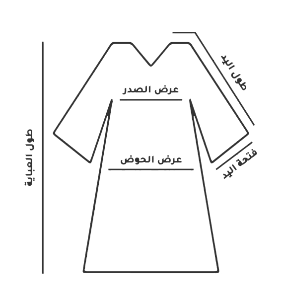 - Measurements are taken from one side of the abaya (either the front or the back).